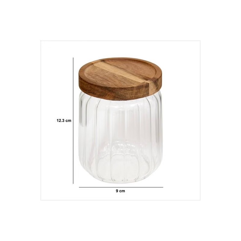 Bocal en verre strié 0,5L couvercle en acacia HARMONY - Transparent