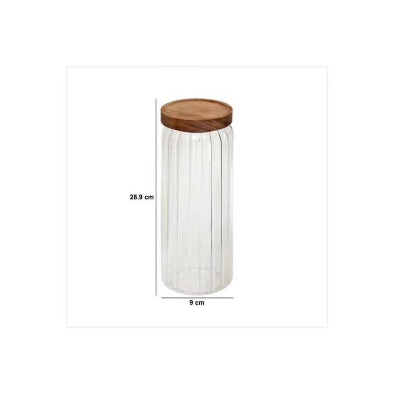 Bocal en verre strié 1,3L couvercle en acacia HARMONY - Transparent