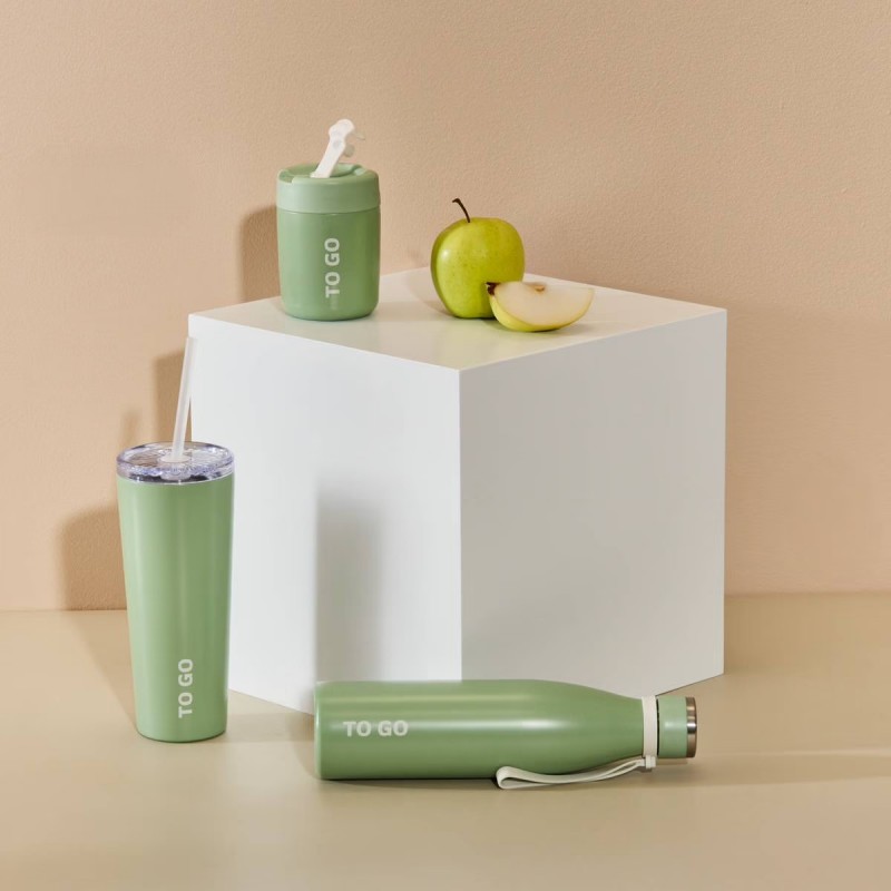 Le gobelet isotherme TO GO 0,7L vert avec paille est l’allié idéal pour vos boissons au quotidien.