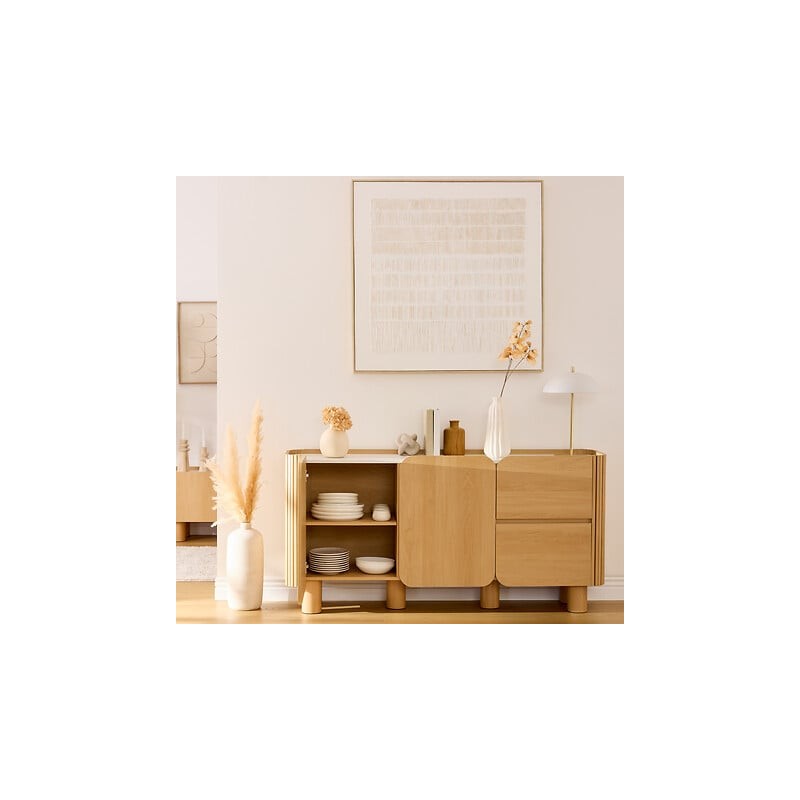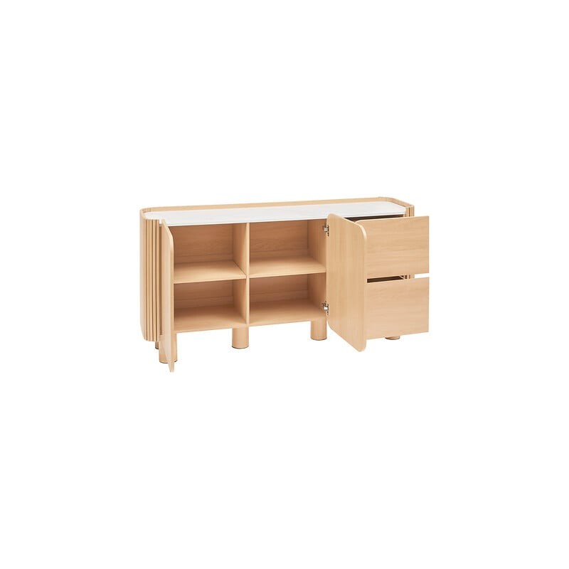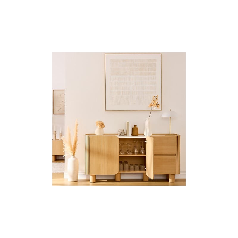 Buffet 2 portes et 2 tiroirs HOMELYA - Naturel et effet marbre