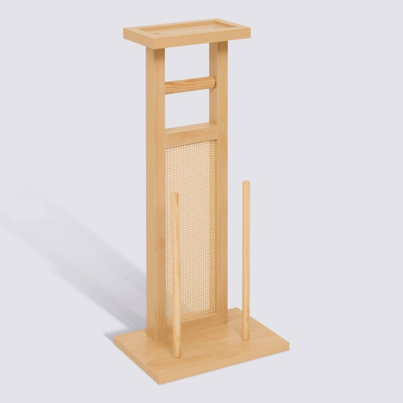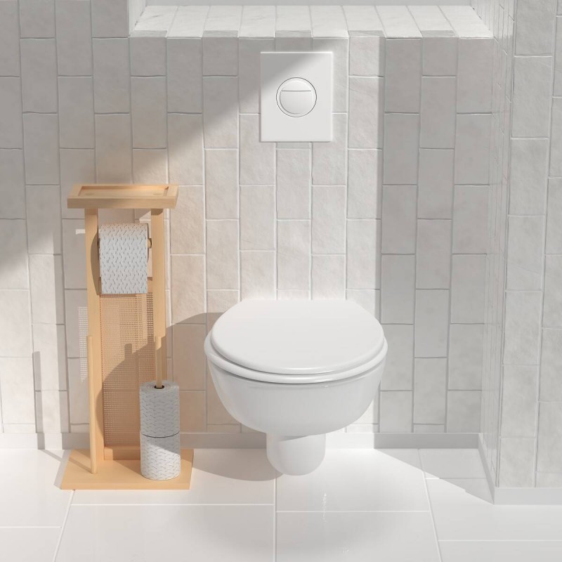 Le support permet de maintenir un rouleau de papier toilette accessible tandis que la réserve intégrée offre un rangement pratique pour plusieurs rouleaux supplémentaires. Son support supérieur dédié au téléphone ou aux petits objets du quotidien apporte un véritable confort d’utilisation au quotidien.