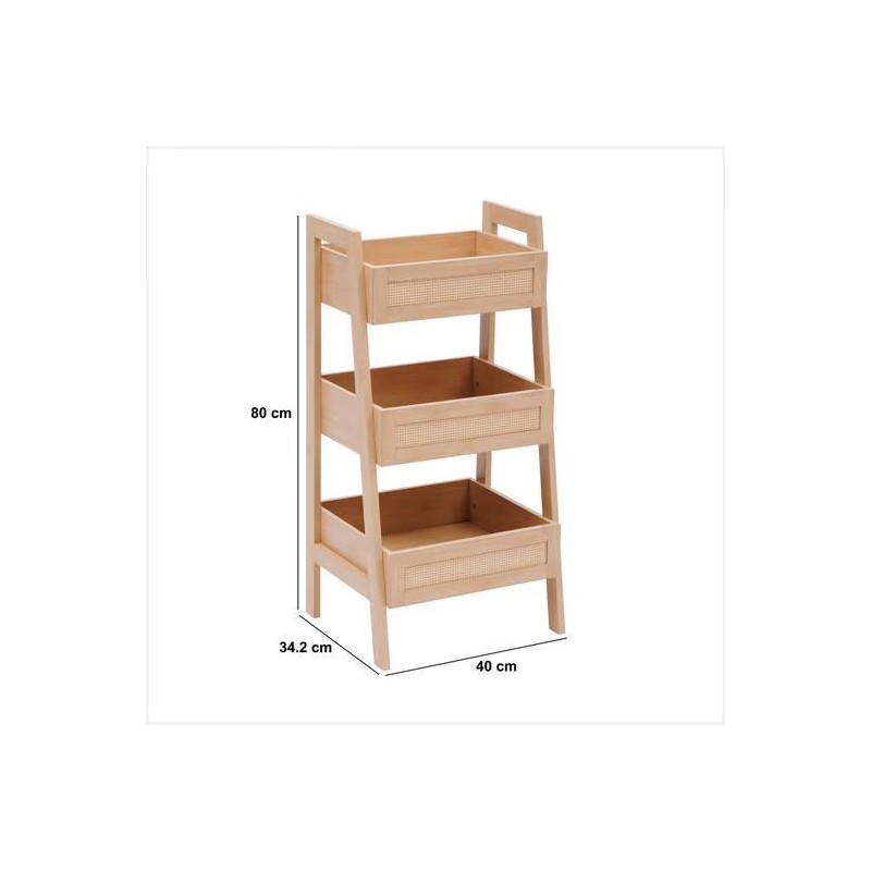 L’étagère CANE 3 niveaux naturel associe rangement fonctionnel et design naturel pour organiser élégamment votre intérieur.