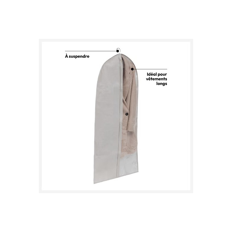 Son format long permet de couvrir intégralement les vêtements sans les froisser, tout en facilitant l’organisation du dressing. Pratique et fonctionnelle, cette housse est une solution simple pour garder des vêtements propres et bien protégés au quotidien.