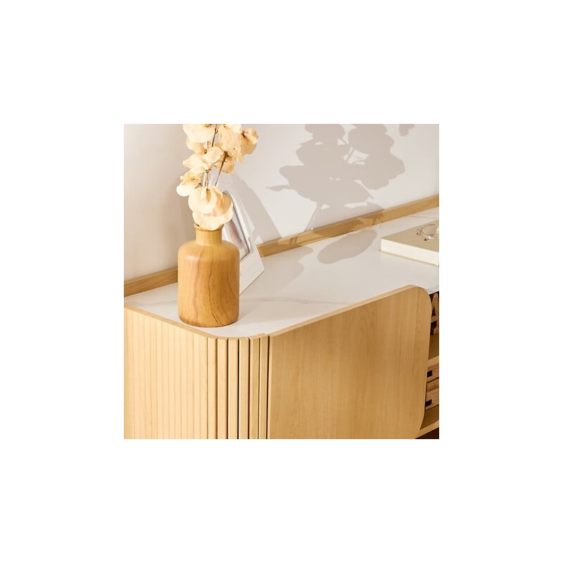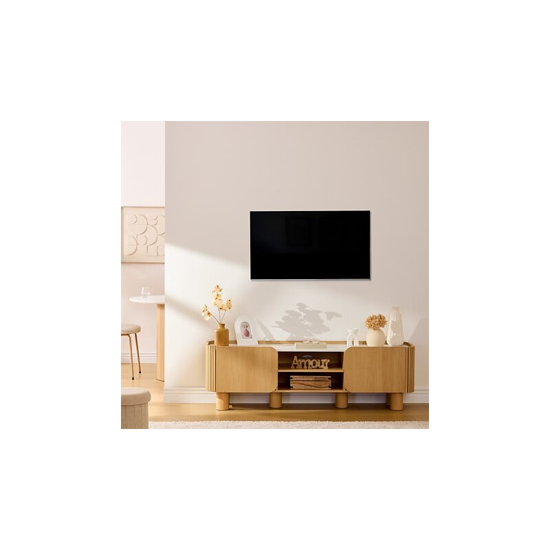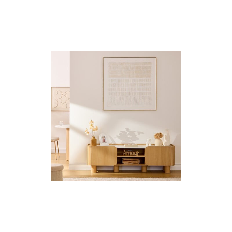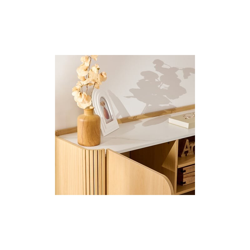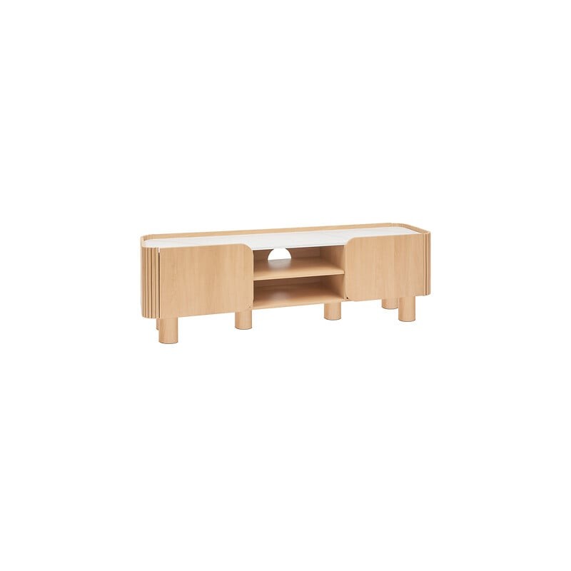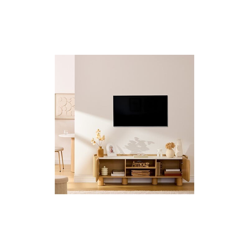 Meuble TV 2 portes HOMELYA - Naturel et effet marbre