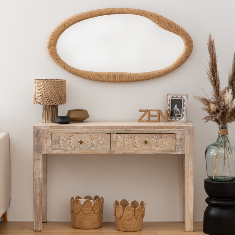 Le miroir corde organique LAIA allie fonctionnalité et esthétique pour enrichir ta décoration intérieure. Avec son cadre en corde et sa forme organique élégante, il apporte une touche naturelle et chaleureuse à ton salon, ton entrée ou ta chambre.