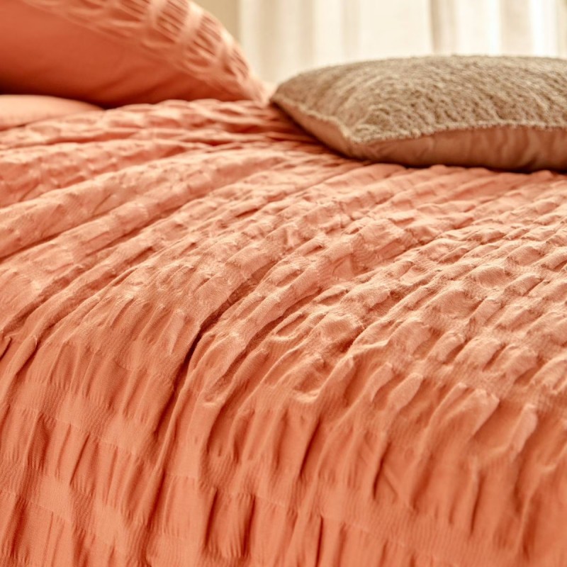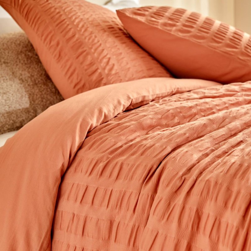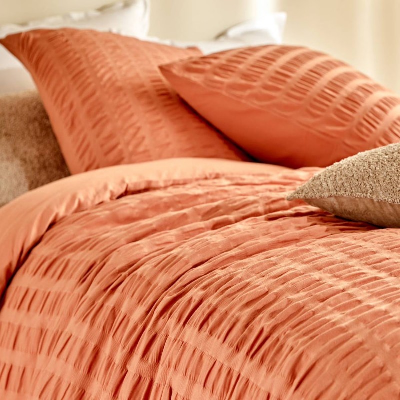 Apportez chaleur et caractère à votre chambre avec la parure de lit IRHIA coloris terracotta.