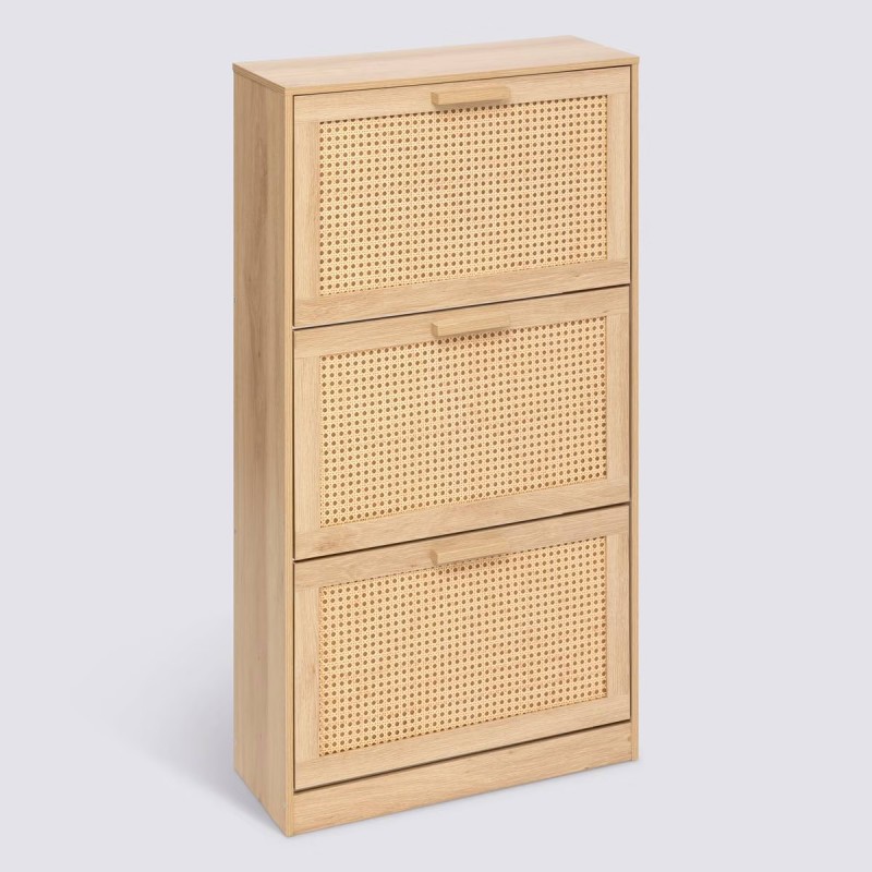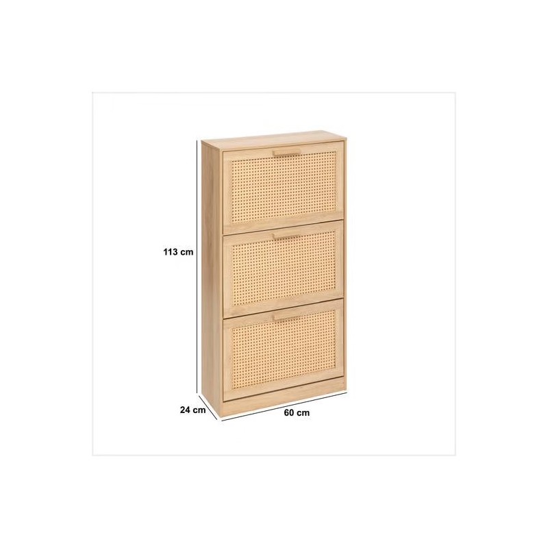 Son design en cannage apporte une touche naturelle et tendance, tandis que sa finition beige s’intègre facilement dans une décoration moderne, bohème ou scandinave. Fonctionnel et décoratif, ce rangement permet de protéger les chaussures de la poussière tout en les gardant accessibles au quotidien.