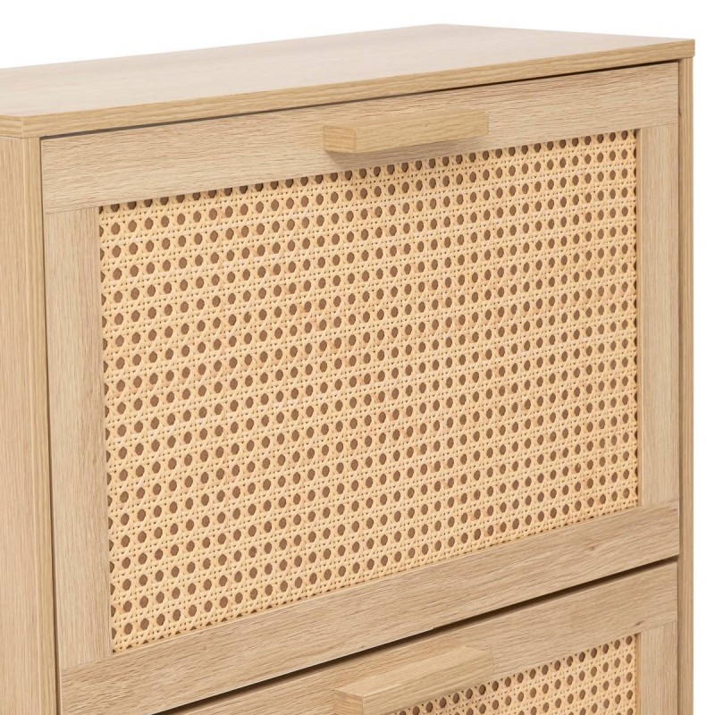 Allie organisation et esthétisme avec le rangement à chaussures en cannage DRAWY de la marque 5FIVE. Conçu pour accueillir jusqu’à 18 paires de chaussures, ce meuble est idéal pour garder une entrée, un couloir ou un dressing parfaitement ordonné.