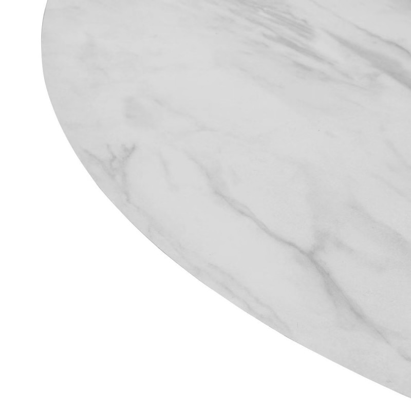 Son plateau rond en bois finition effet marbre apporte une touche sophistiquée. Le décor marbré, subtil et lumineux, crée un rendu raffiné qui attire naturellement le regard et valorise l’espace repas.
